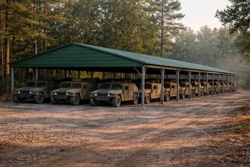A horizontal roof metal carport features roof panels running end-to-end. This budget-friendly design is ideal for open areas and offers basic protection from sun and weather. It's less expensive due to the simpler engineering and fewer structural components required.BEST - Vertical Roof