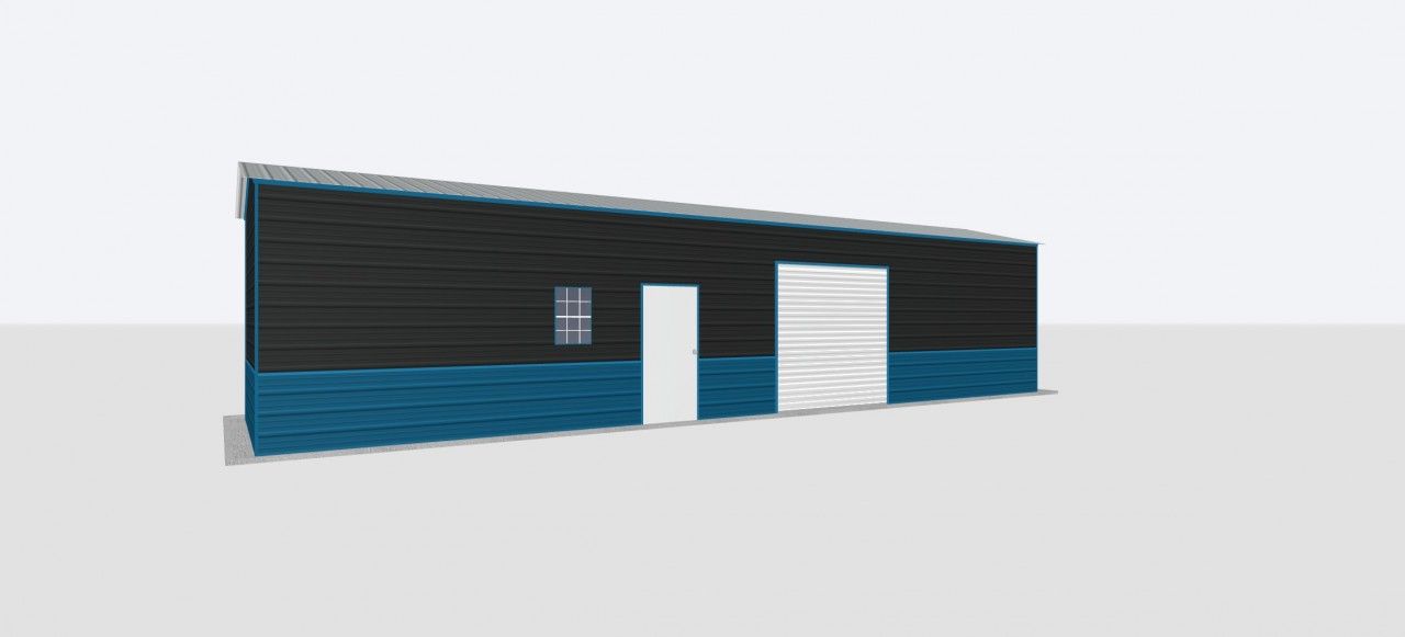This 12x45x10 Metal Garage is one of our best garages. This building features the following: (1) 8×8 Chain Drive Roll up door, (1) Window, and (1) Walk door.