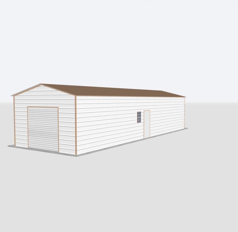 This 16x55x10 Metal Garage is one of our best garages. This building features the following: (1) 8×8 Chain Drive Roll up door, (1) Window, and (1) Walk door.