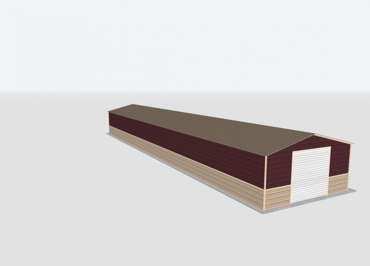 This 18x100x8 Metal Garage is one of our best garages. This building features the following: (1) 8×8 Chain Drive Roll up door, (1) Window, and (1) Walk door.