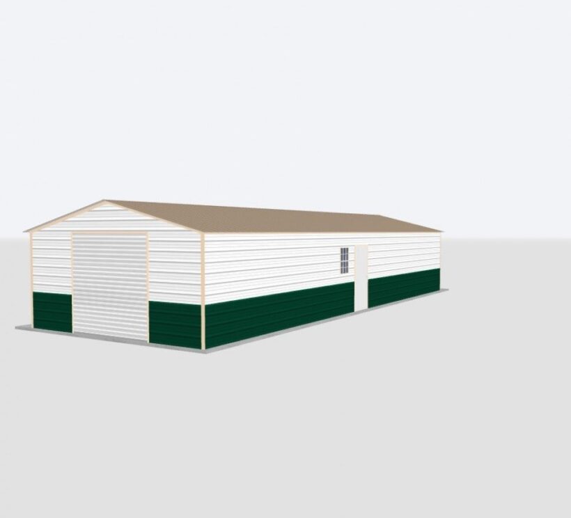 This 18x50x8 Metal Garage is one of our best garages. This building features the following: (1) 8×8 Chain Drive Roll up door, (1) Window, and (1) Walk door.