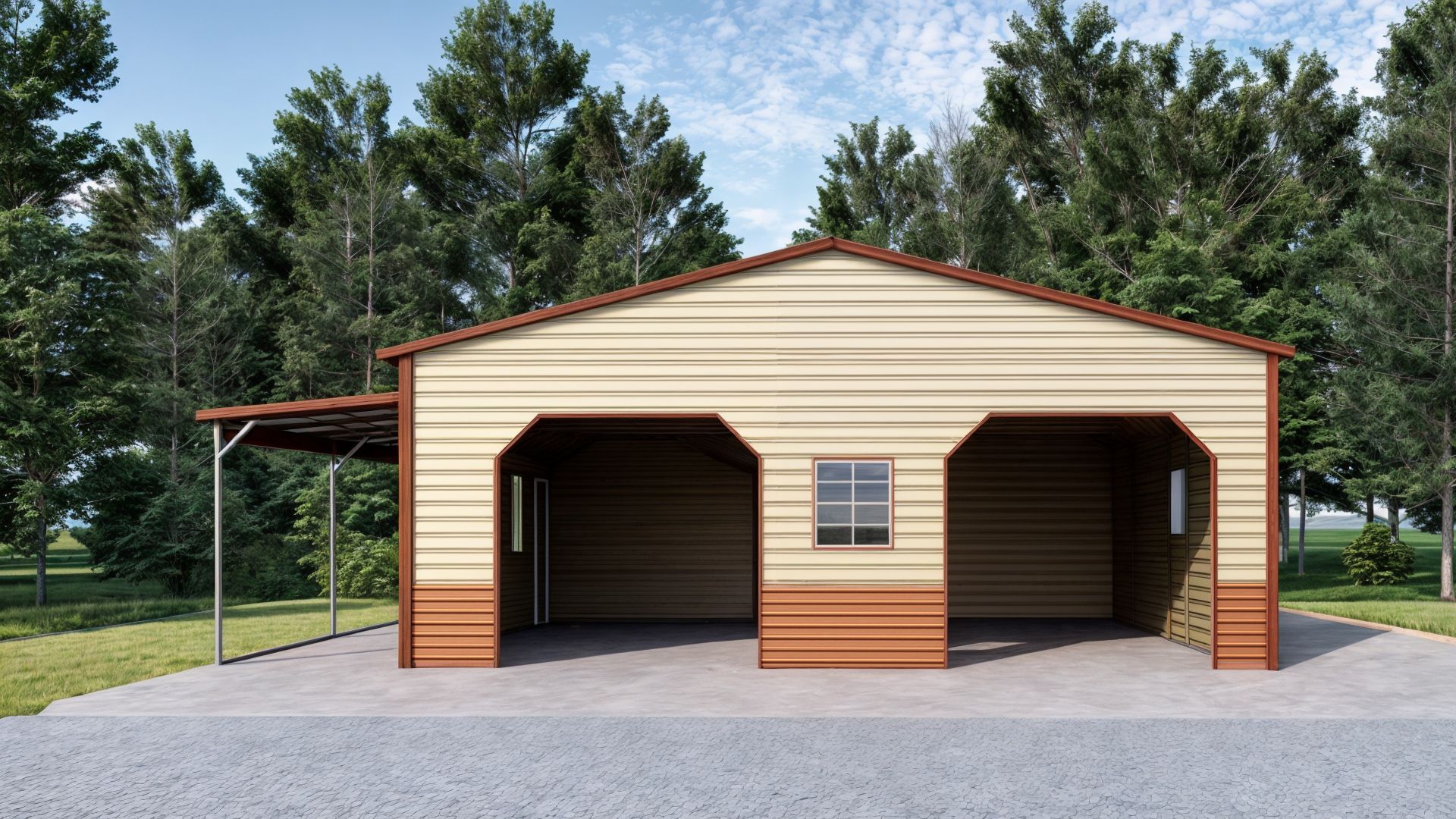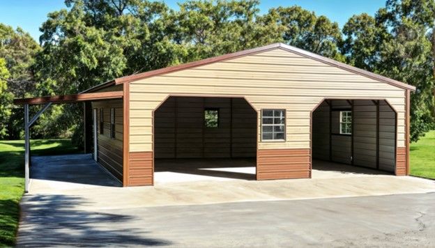 24x30x9 2-Car Metal Garage Workshop with Lean-To