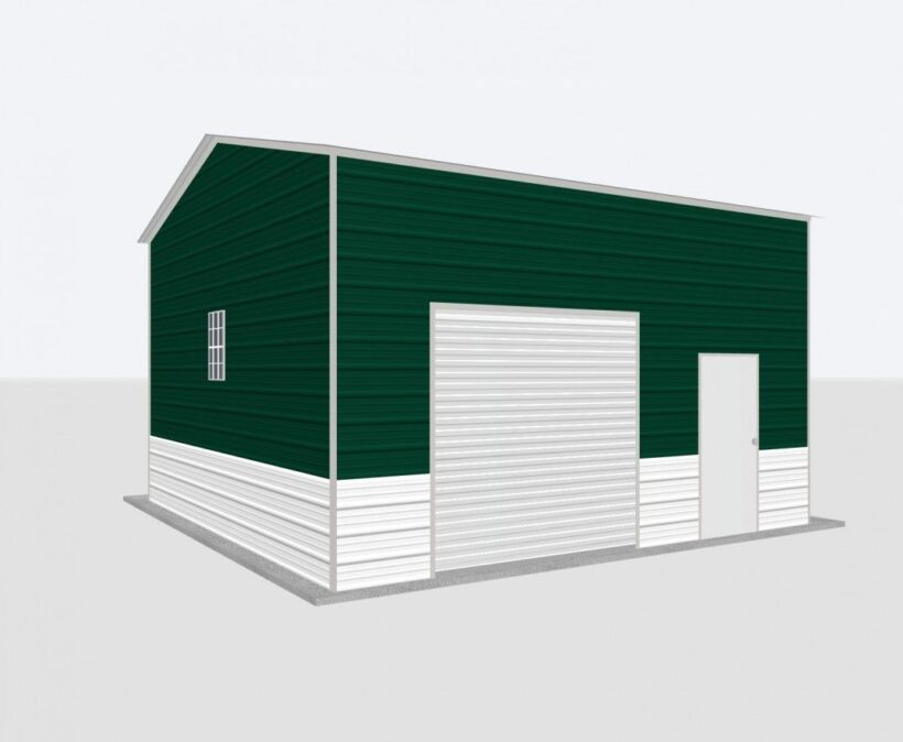 This 20x20x12 Metal Garage is one of our best garages. This building features the following: (1) 8×8 Chain Drive Roll up door, (1) Window, and (1) Walk door.