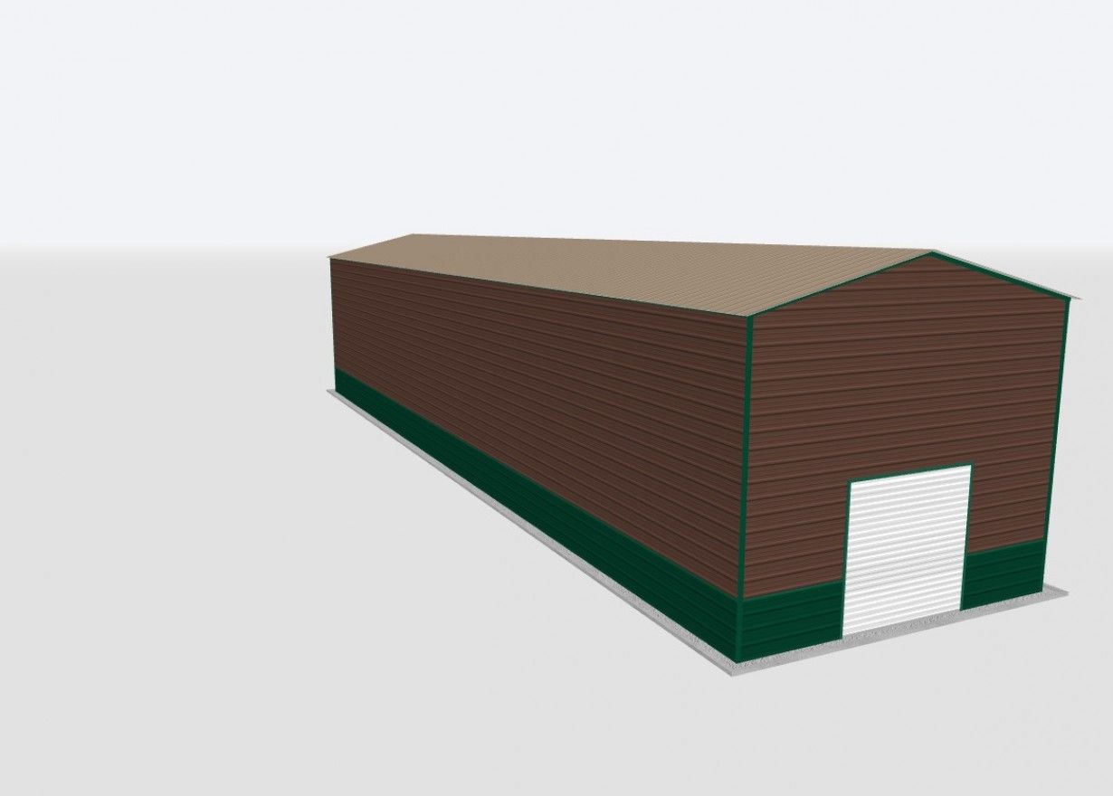 This 20x90x16 Metal Garage is installed on your level ground. This building features the following: (1) 8x8 Chain Drive Roll up door, (1) Window, and (1) Walk door. The Metal Building as Pictured is ON SALE $27,264.00 Delivered and installed. Price shown does not include concrete.
