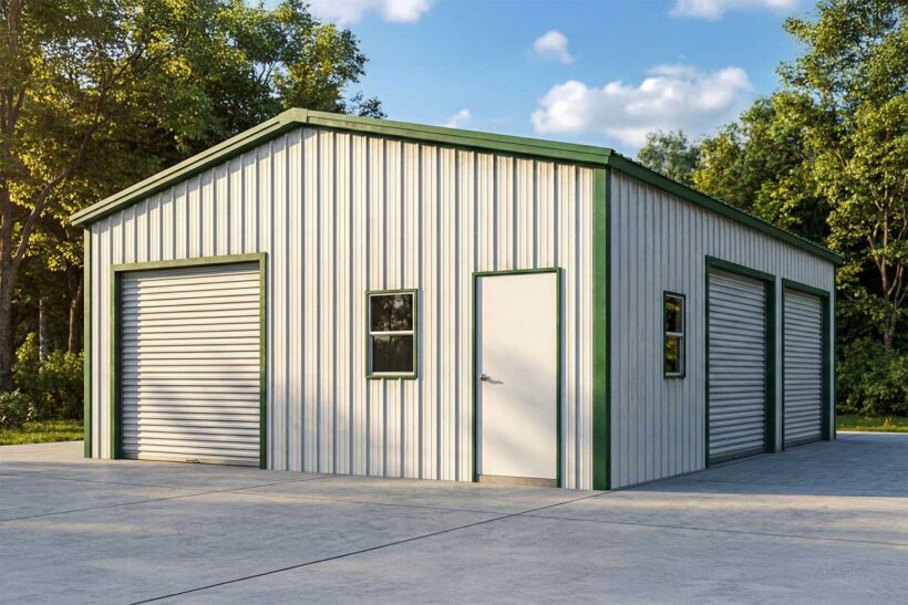 This 24×40 Metal Garage is one of our best garages. This building features the following: (2) 10×10 roll-up doors (1) 8×8 roll-up door (1) walk-in door (2) windows.