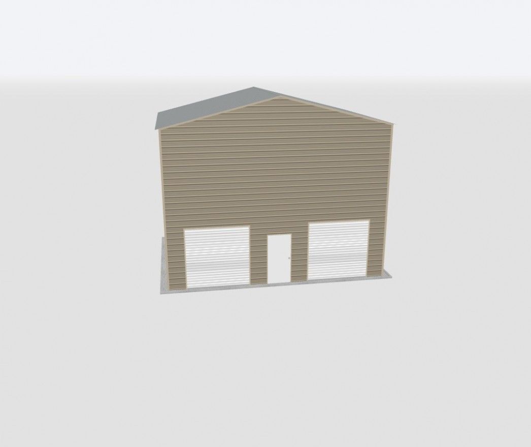 This 28x20x20 2-Car Metal Garage is one of our best garages. This building features the following: (2) 8×8 Chain Drive Roll up door, (1) Window, and (1) Walk door.