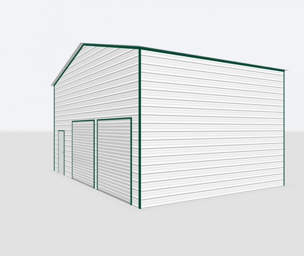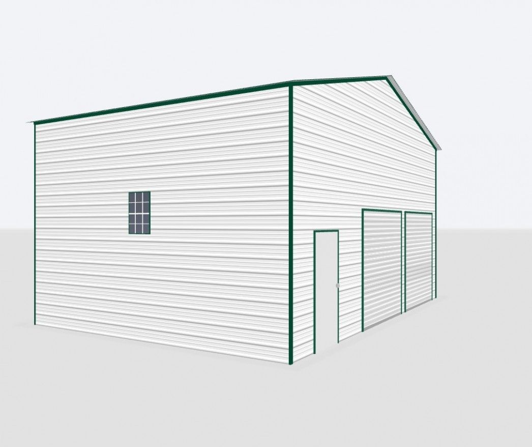 This 28x35x8 2-Car Metal Garage is one of our best garages. This building features the following: (2) 8×8 Chain Drive Roll up door, (1) Window, and (1) Walk door.