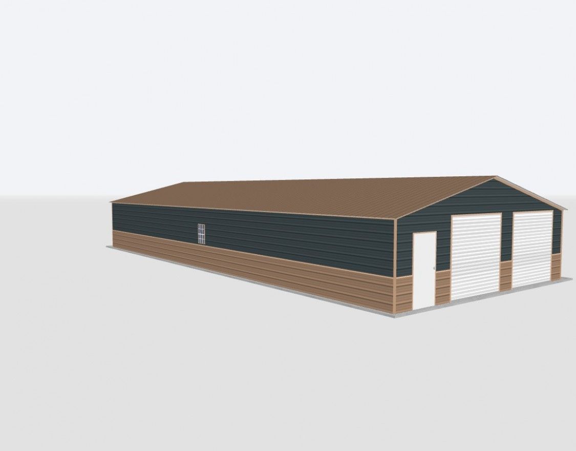 This 28x65x8 2-Car Metal Garage is one of our best garages. This building features the following: (2) 8×8 Chain Drive Roll up door, (1) Window, and (1) Walk door.