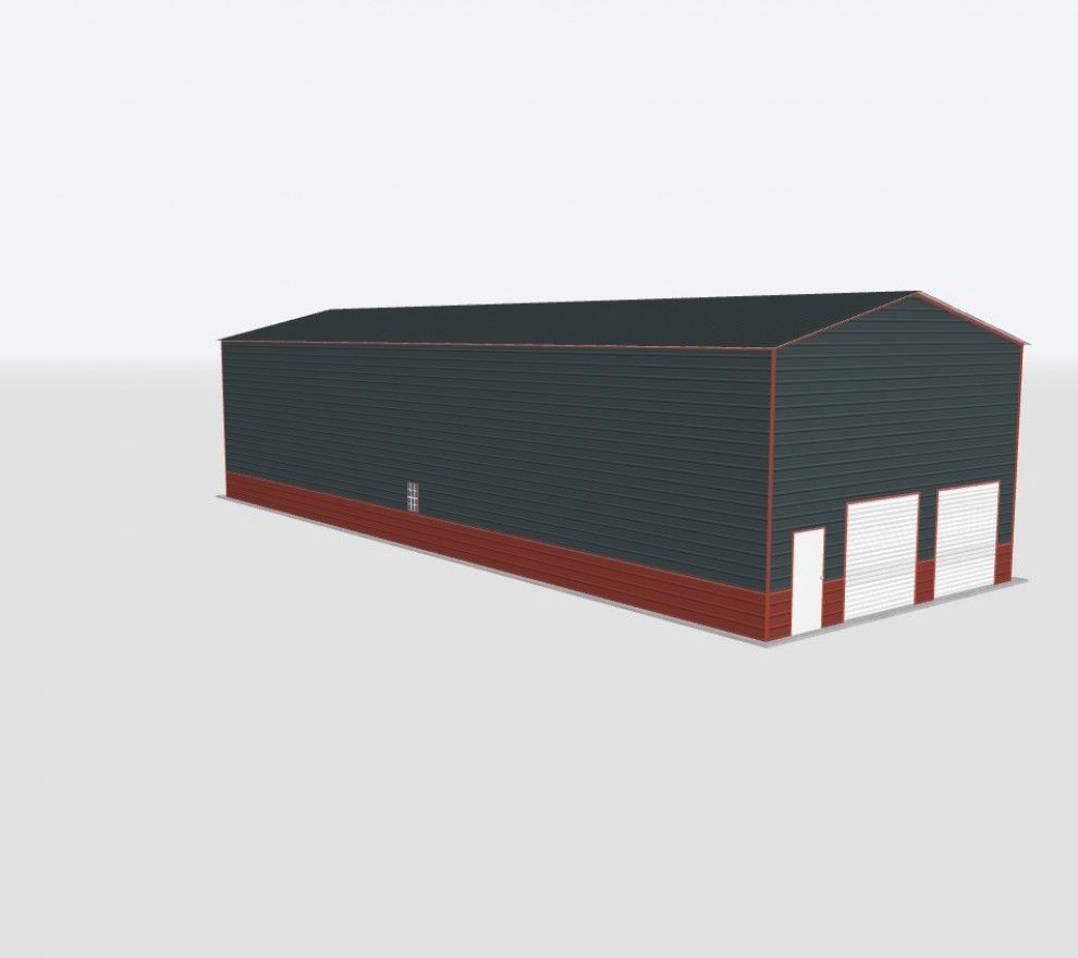 This 28x90x14 2-Car Metal Garage is one of our best garages. This building features the following: (2) 8×8 Chain Drive Roll up door, (1) Window, and (1) Walk door.