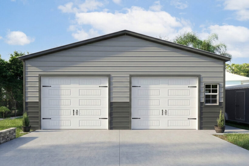 Top 5 2-Car garage! This 30×25 metal garage, featuring (2) 8×8 Rollup door(s), (1) walk door, (1) window(s); Includes Free Delivery & Installation. This durable 30×25 steel building offers 750 sq ft garage with 10 foot wall heights make this a great option for 2 vehicles plus additional storage. With 7,500 cu ft of storage space you could easily park a truck or SUV in this space, and still have room for kids bikes, lawn equipment and more; even on a compact residential lot. Wind and snow load certified structure. Fast & Flexible financing start at $0 down with low monthly payment.