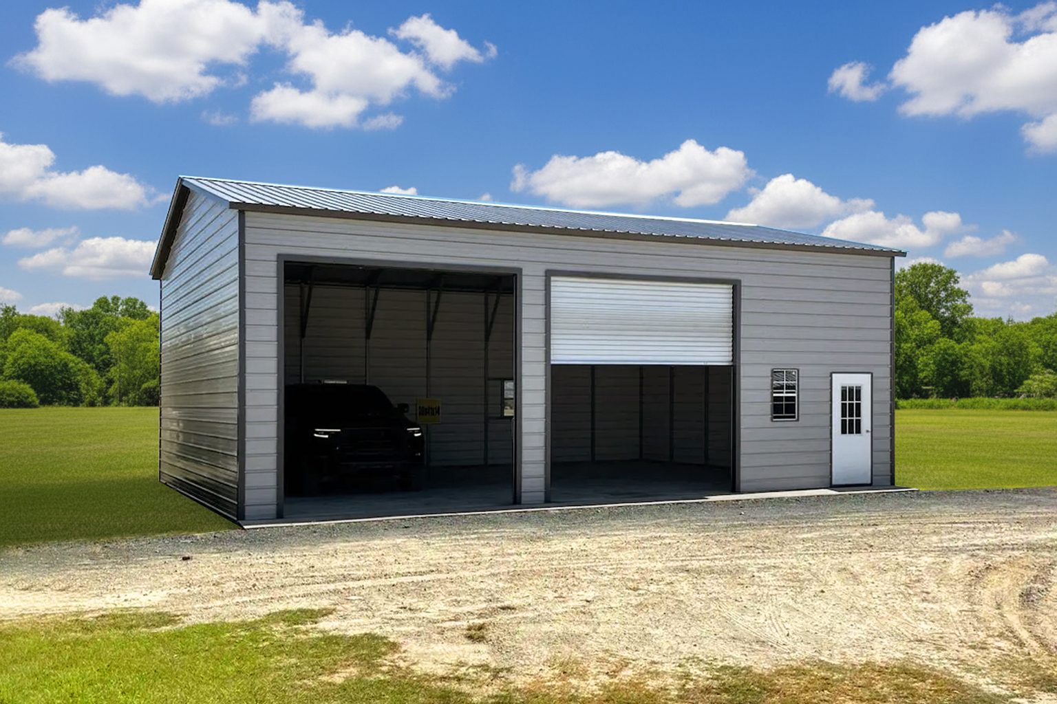 30x40x14 metal building garage with (2) 12x12 roll-up doors, (1)...$26,230.00Original price was: $26,230.00.$24,014.62Current price is: $24,014.62.As low as $316/mo -