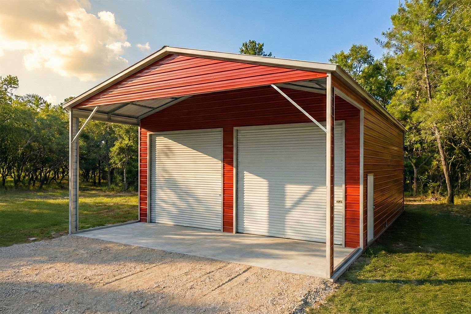 AS LOW AS: $238.76/MONTH This 30x40x14 Metal Barn & Garage ( 30x30 enclosed/ 30x15 overhang) is installed on your level ground. This building features the following: (2) 10x10 Chain Drive Rollup doors, (1) Gable, (2) Frame Outs, and (1) Walk door. The Metal Building as Pictured is ON SALE $18,088.00 Delivered and installed. Price shown does not include concrete.30' x 40' METAL GARAGE FEATURES