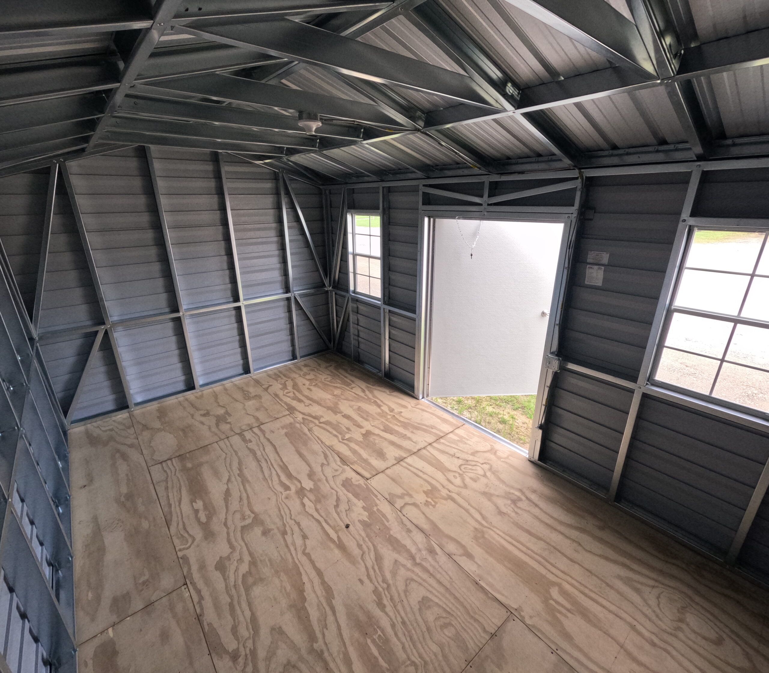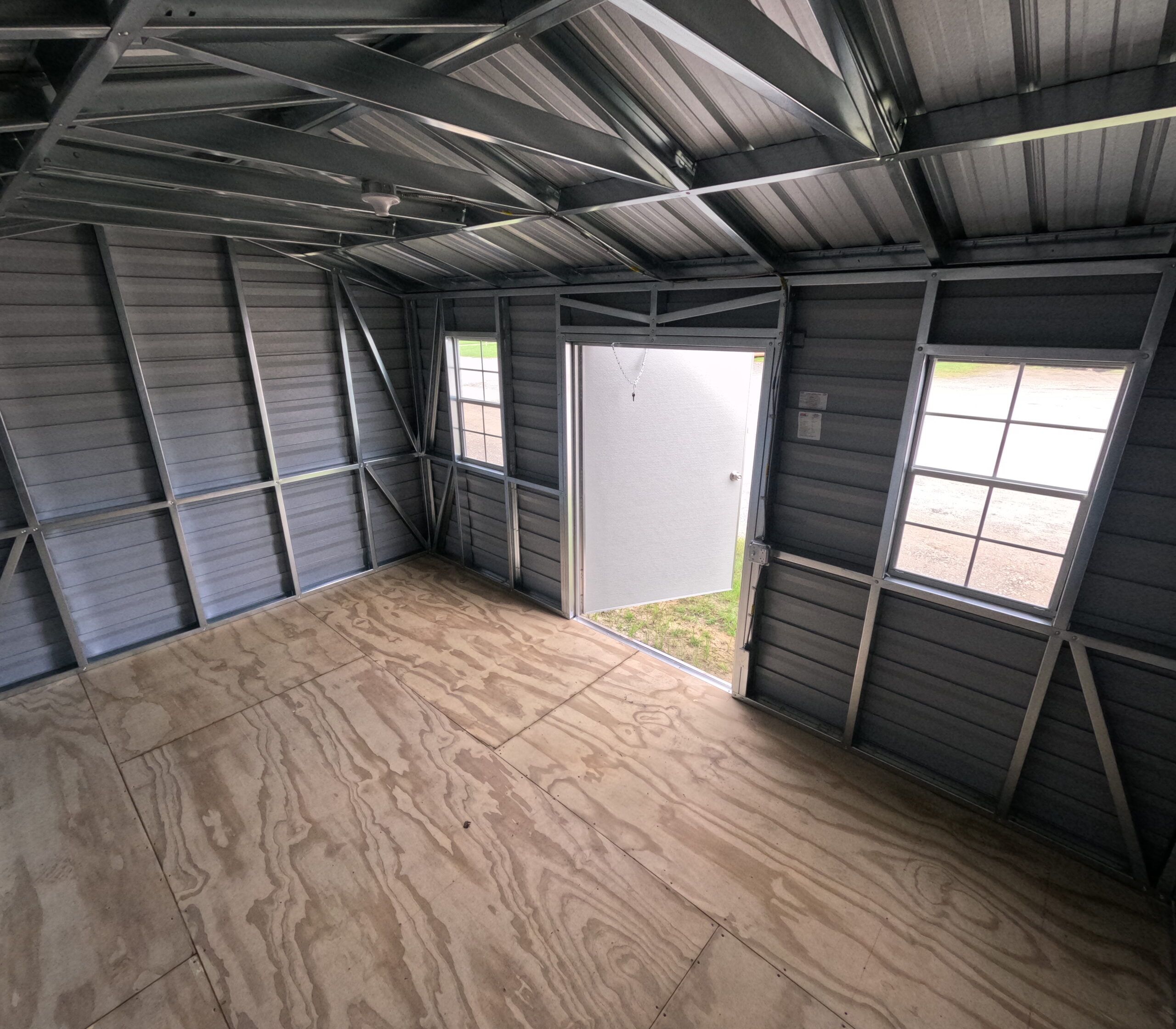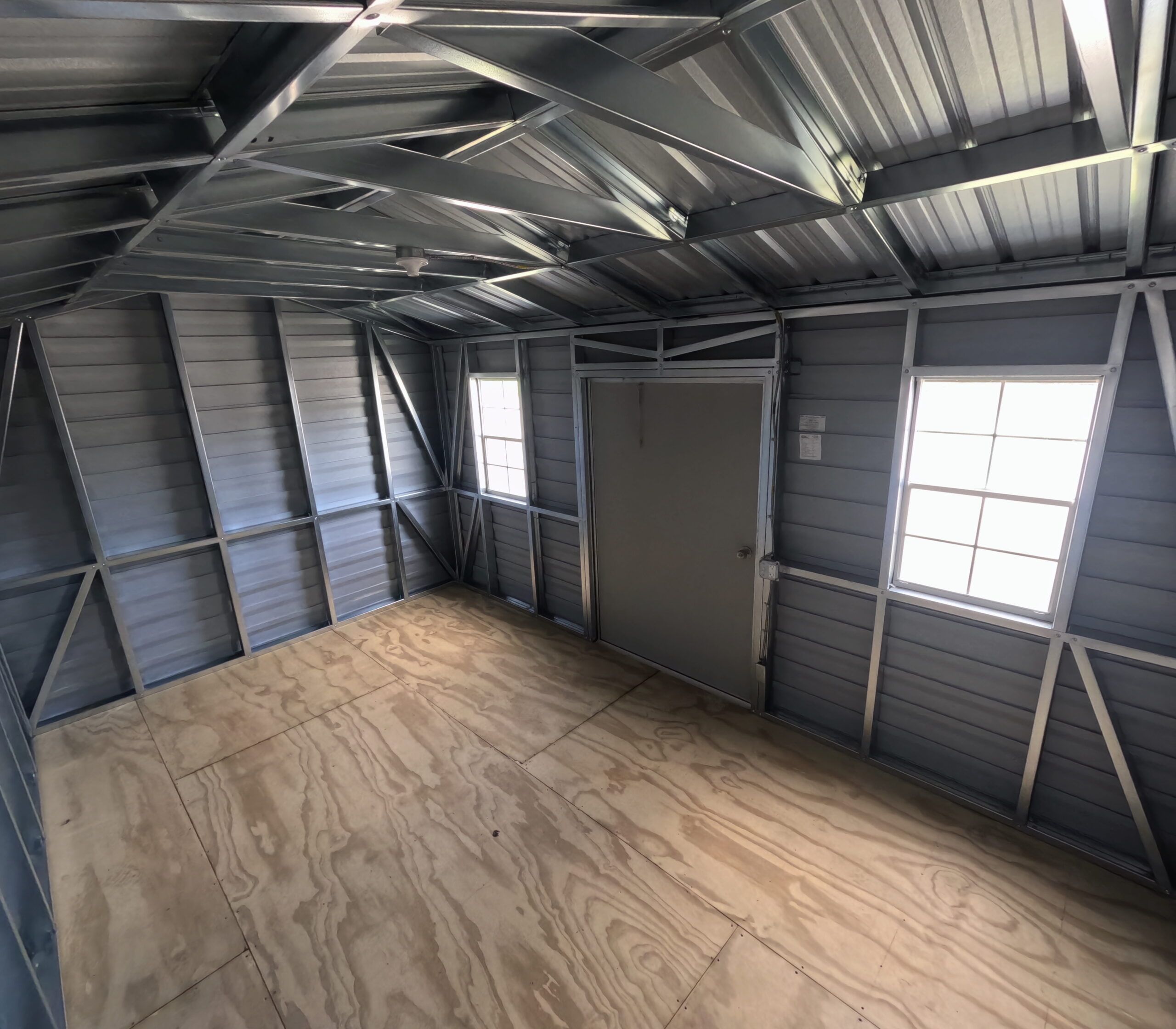 - Other Upgrades: Tie down straps, galvanized steel (minimum of 4 per building), 16" Exhaust fan with guard, automatic shutter, thermostat, and switch