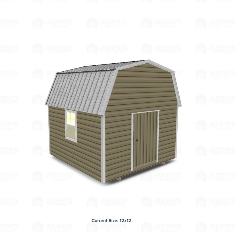 This 12×12 Storage Shed comes with (1) 48″x72″ Weather Tite door, (2) 22″x36″ window, (1) loft 4′ deep across 1 end, standard wiring package of one light, one switch, and one receptacle at the door.
