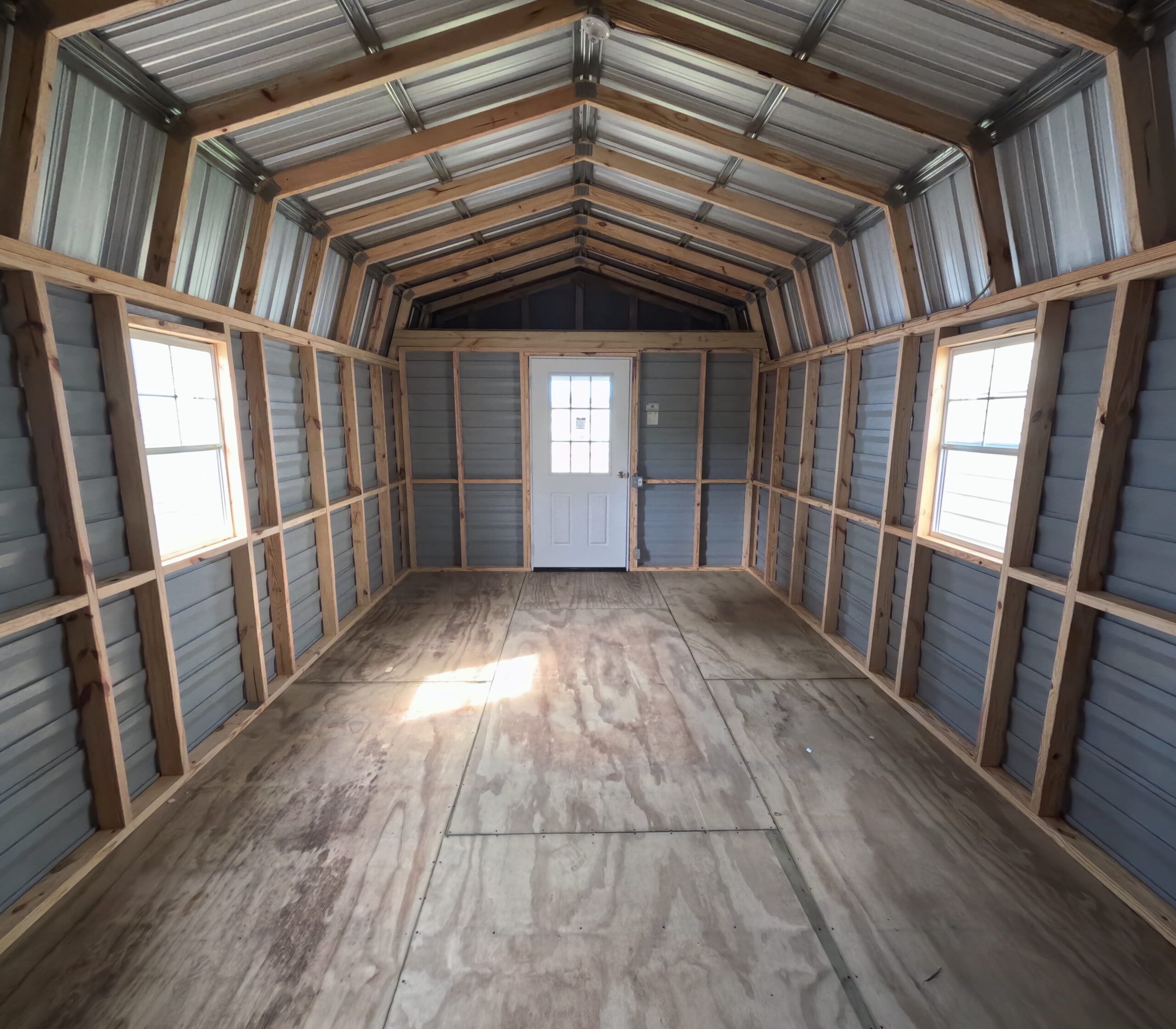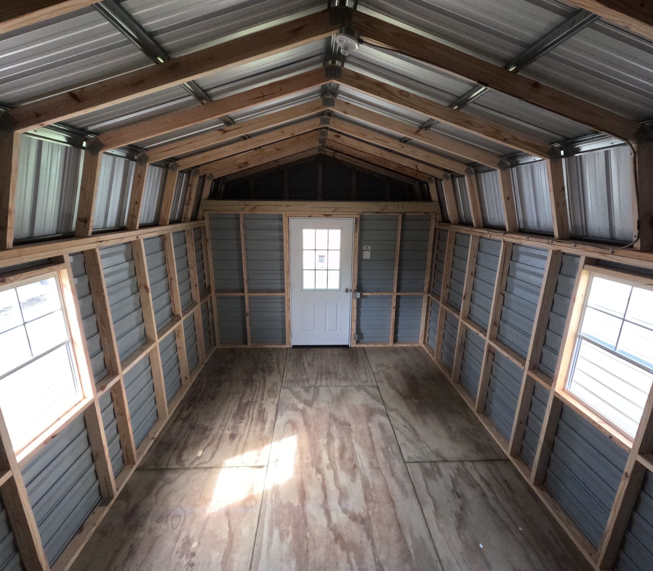 This 12×24 Storage Shed comes with (1) Walk-in Door, (2) 22″x36″ window, standard wiring package of one light, one switch, and one receptacle at the door.