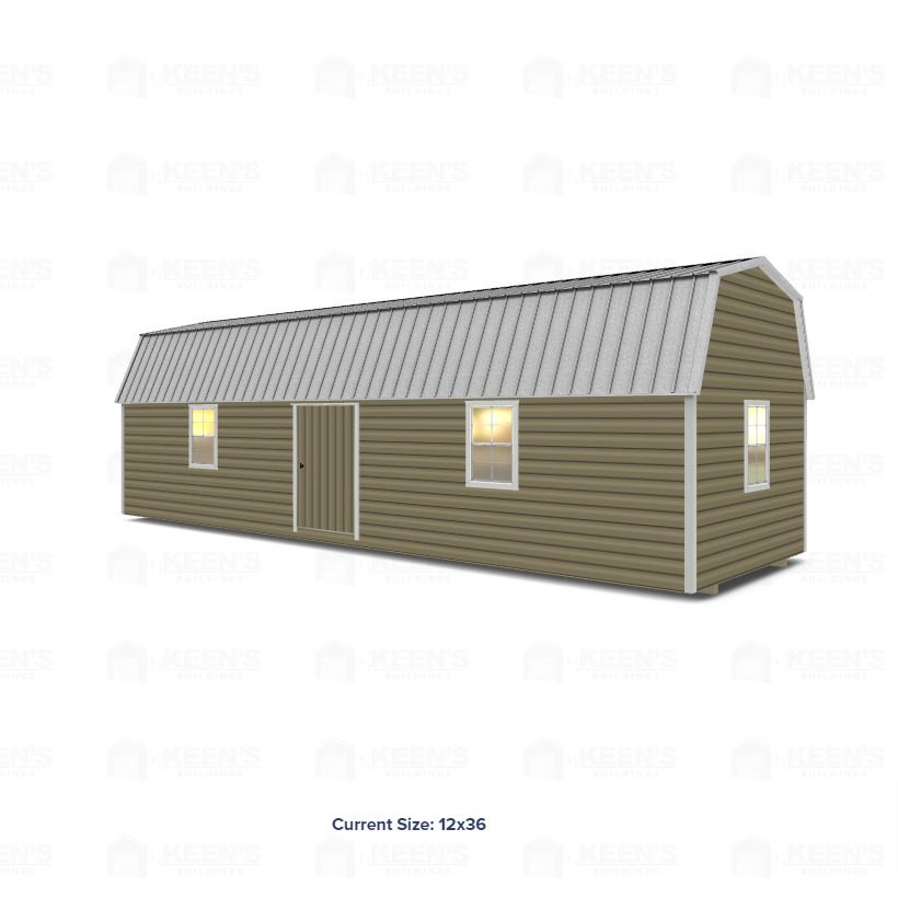 12×36 Lofted Shed Barn w/ Eve Side Door