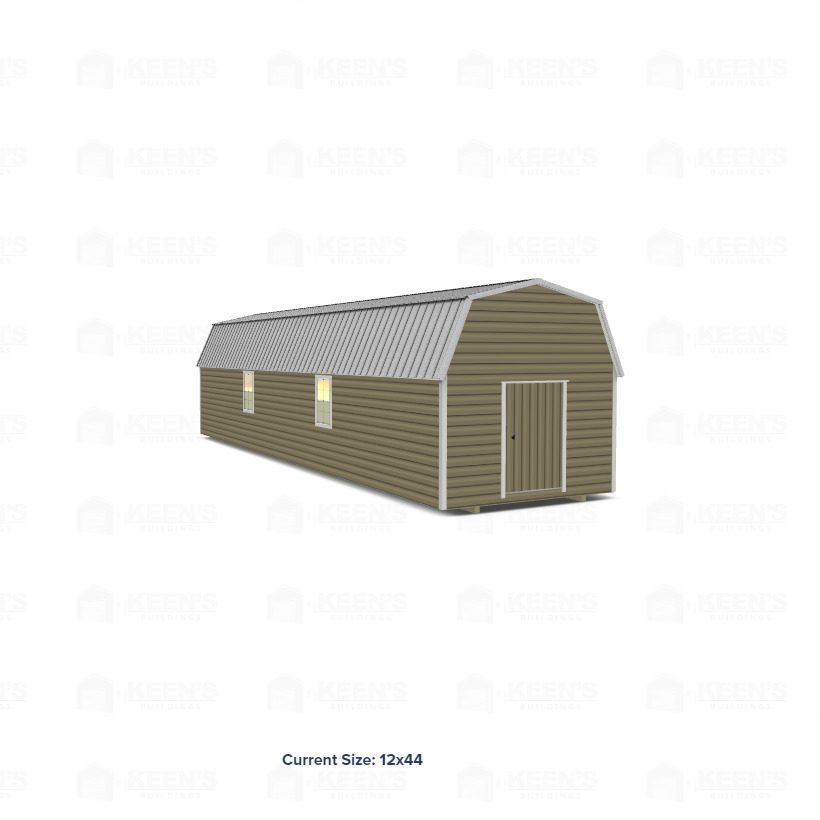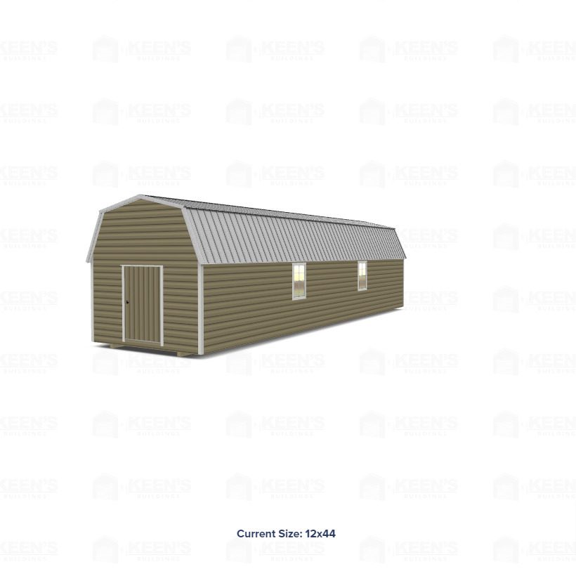 This 12×44 Storage Shed comes with (1) 48″x72″ Weather Tite door, (4) 22″x36″ window, (1) loft 4′ deep across 1 end, standard wiring package of two lights, two receptacles and one switch at the door.
