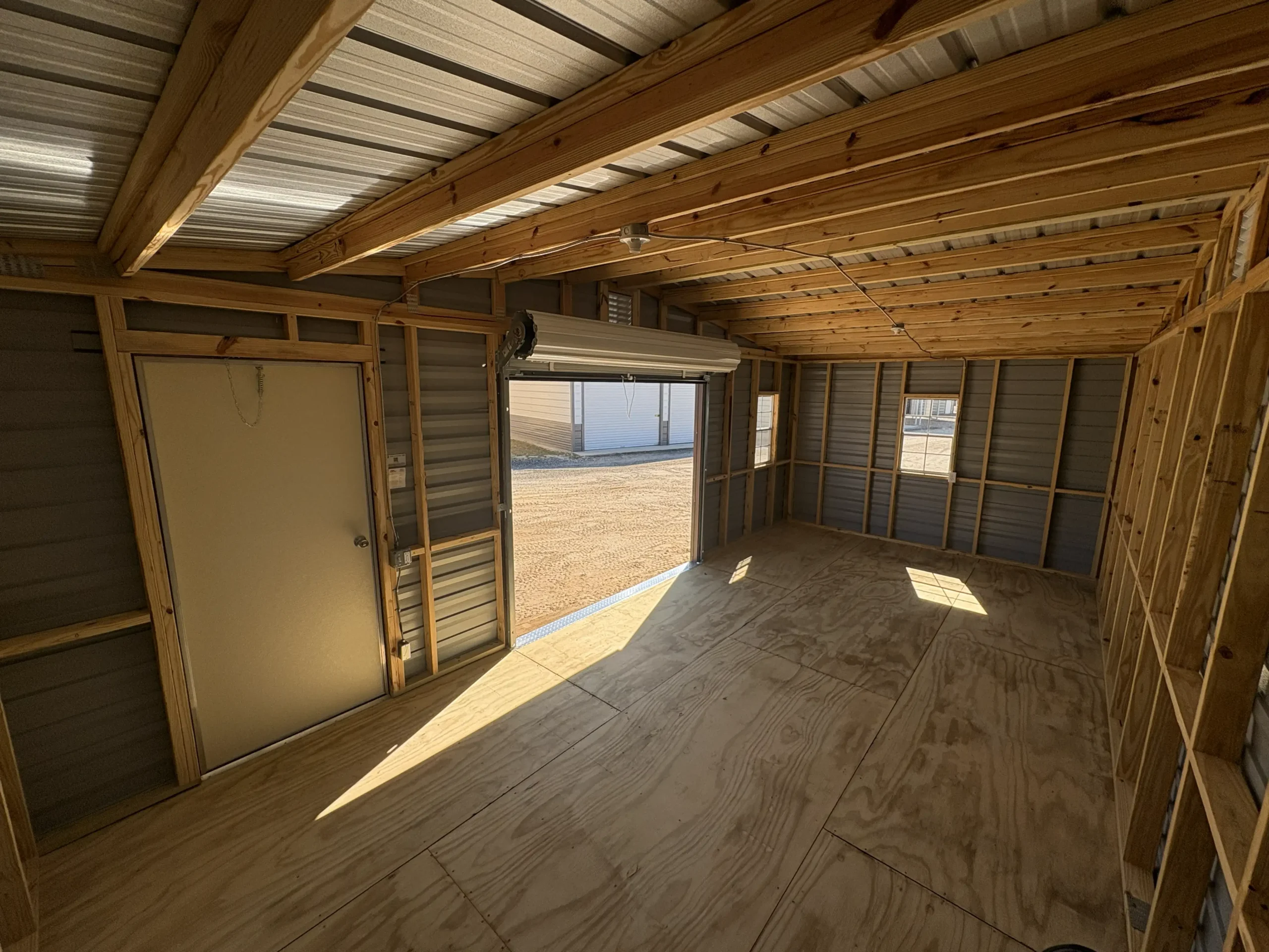 This side gabled shed provides ample space for a shorter yard, with a roll-up and walk-in door, 3 windows, and an electrical package.