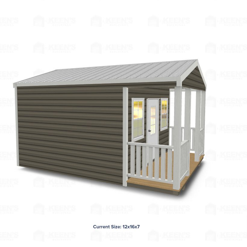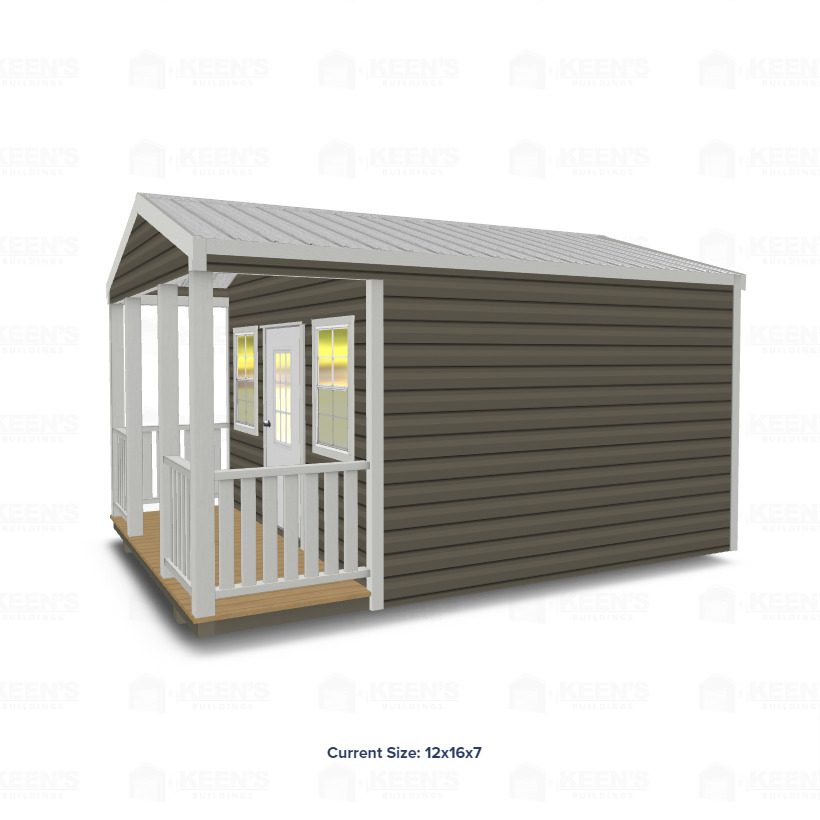 This 12×16 Storage Shed comes with a 4′ porch across 1 end, (1) 36″x72″ insulated door, (2) 22″x36″ windows, standard wiring package of one light, one switch and one receptacle at the door.