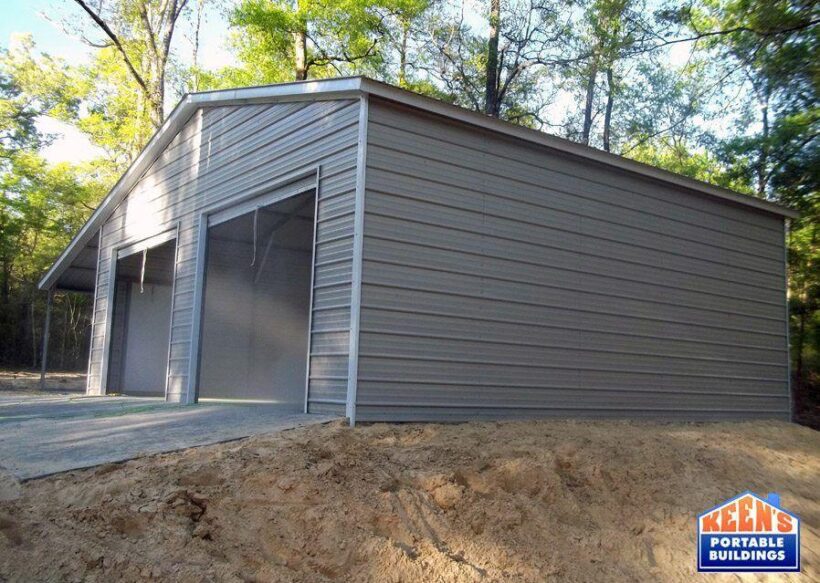 This 30×30 Metal Garage features (2) 10×10 rollup doors and (1) walk door.