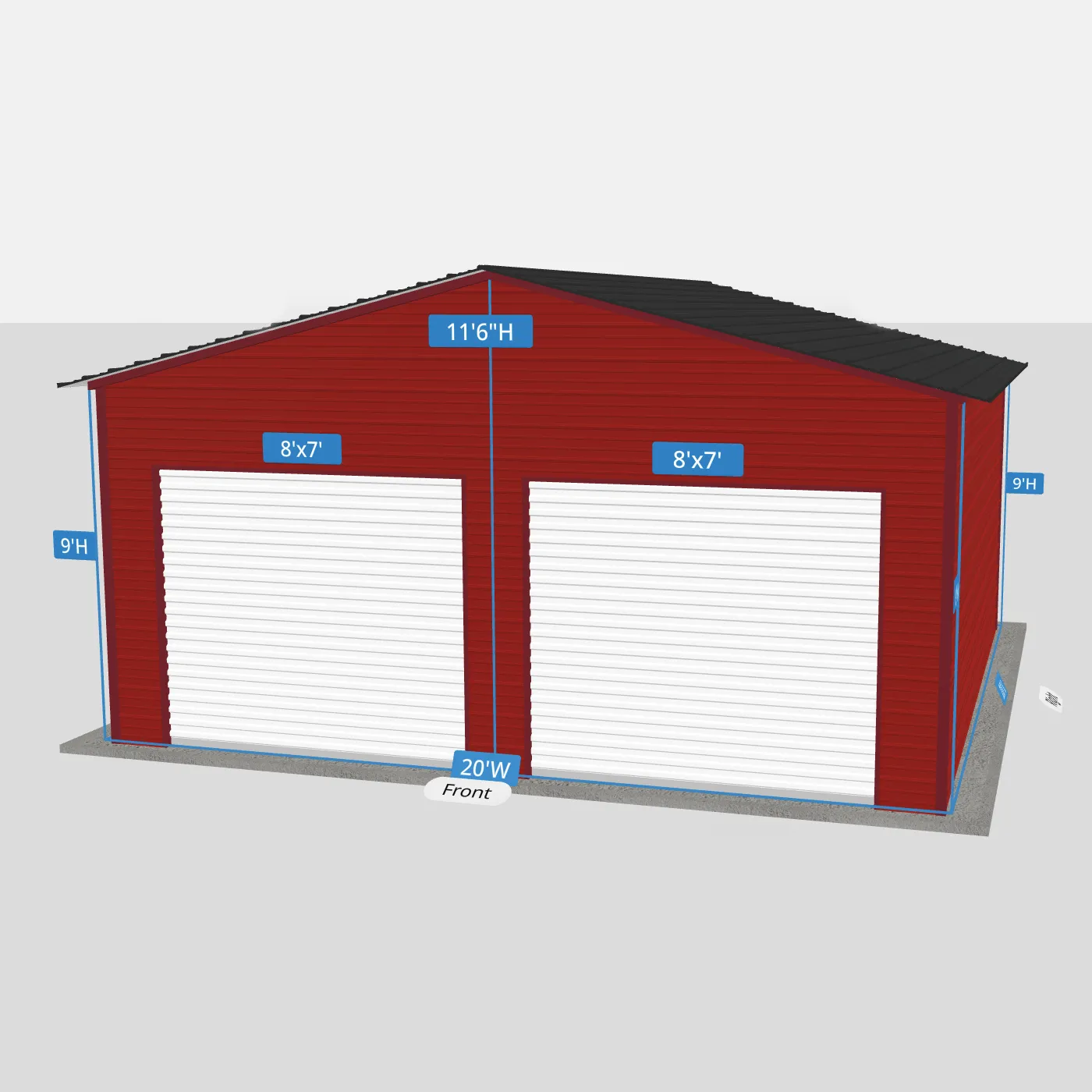 As low as $75/month for this affordable 2-car garage for vehicle security and protection. With 400 sq ft of space this 20×20 metal building is the perfect small garage for the use of 2-vehicles or additional storage. Engineered to withstand high winds and harsh weather this is the perfect small 2-car garage for any size lot. This 20×20 garage comes with (2) roll-up doors, professional installation and industry leading warranty.